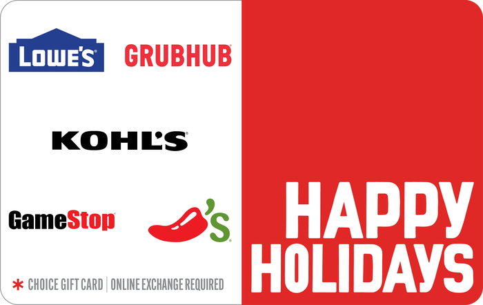 Save on gift card purchases and receive 2X Fuel Points when you shop online now through Dec. Use the Happy Holidays egift card at any GameStop Lowes Grubhub Kohls and Chilis location in the US. Ad Order today with free shipping.