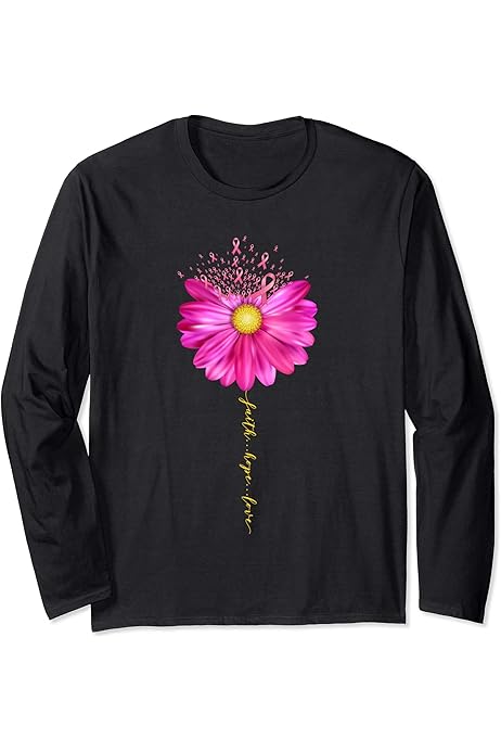 Amazon Com Pink Daisy Flower Faith Hope Love Breast Cancer Awareness Sweatshirt Clothing Shoes Jewelry